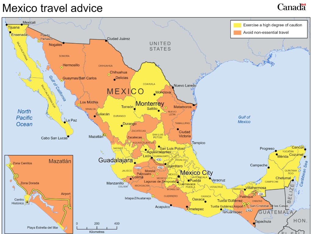 Global Affairs warns that: “The security situation could deteriorate rapidly in these locations and in others across Mexico.Shelter in place orders are in effect in Jalisco and Nayarit. Similar instructions, including curfews, may be issued on short notice in other areas of the country. There are significant disruptions to travel and transportation, including flight delays and cancellations.”