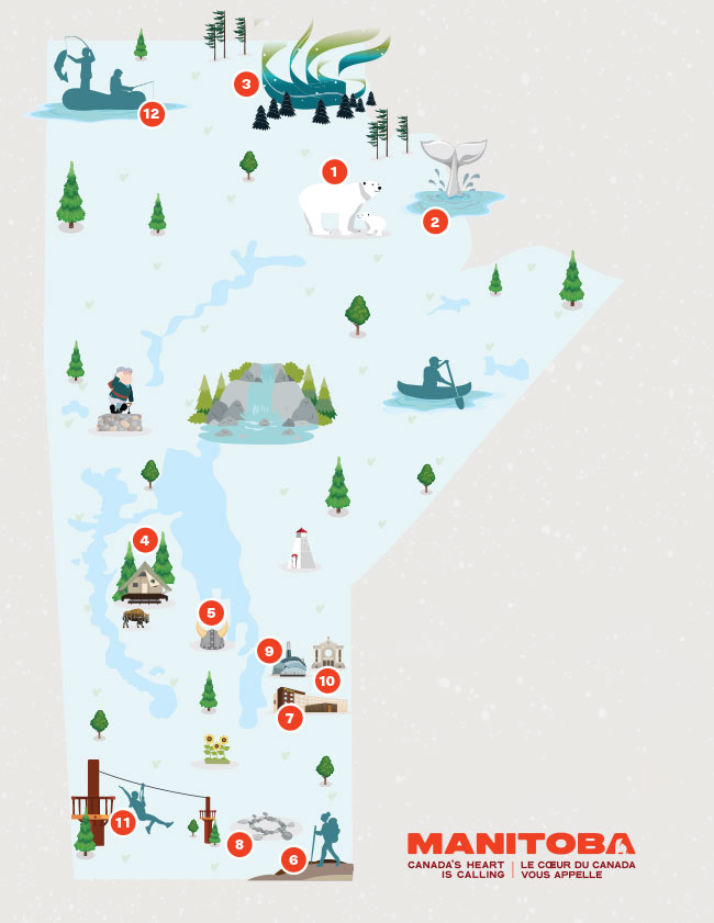 Le Manitoba est situé en plein cœur du Canada, son centre géographique, et accueille des expériences tout à fait incroyables aux quatre coins de la province. Dirigez-vous vers le nord pour rejoindre Churchill, la capitale internationale des ours polaires, pour marcher auprès des ours polaires, faire de la planche à pagaie avec les bélugas et admirer les envoûtantes aurores boréales. Visitez le Parc national du Mont-Riding dans l’ouest pour observer une faune impressionnante de bisons et d’ours noirs. Rendez-vous plus à l’est au Parc provincial du Whiteshell pour en apprendre plus sur la culture et les traditions autochtones lors d’une visite guidée d’un site sacré. Envolez-vous au-dessus de la cime des arbres dans la Pembina Valley du sud pour une aventure en tyrolienne. Découvrez-en plus sur ce que le Manitoba a à vous offrir.