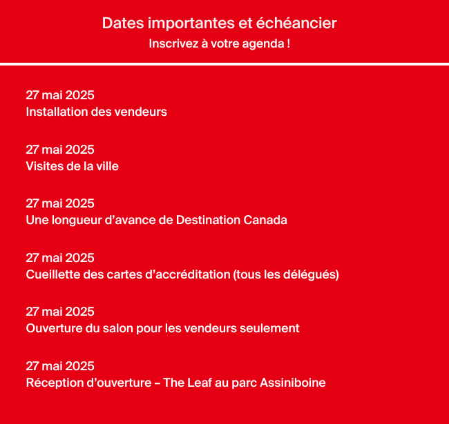 Rendez-vous Canada aimerait remercier les partenaires et commanditaires suivants pour leurs généreuses contributions à Rendez-vous Canada 2025 et leur appui continu envers l’industrie touristique canadienne.