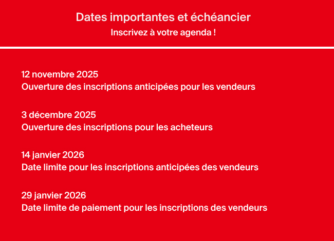 À la lumière des commentaires recueillis auprès des vendeurs et des acheteurs dans le cadre des sondages menés après l’événement Rendez-vous Canada 2025, nous avons apporté quelques changements et améliorations à l’événement de cette année :