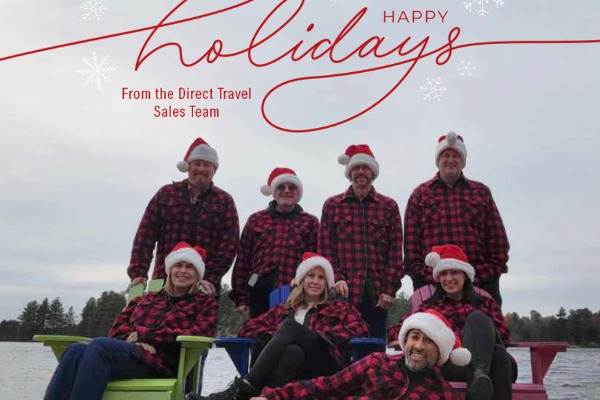 “Recently the Direct Travel Sales Team came together for an in-person training and educational session at which we found time to create our own cottage themed Holiday Card …. On behalf of the entire team here at Direct Travel I’d like to wish you & yours all the very best for the Holiday Season & a very Happy, Healthy & Safe New Year’s.”