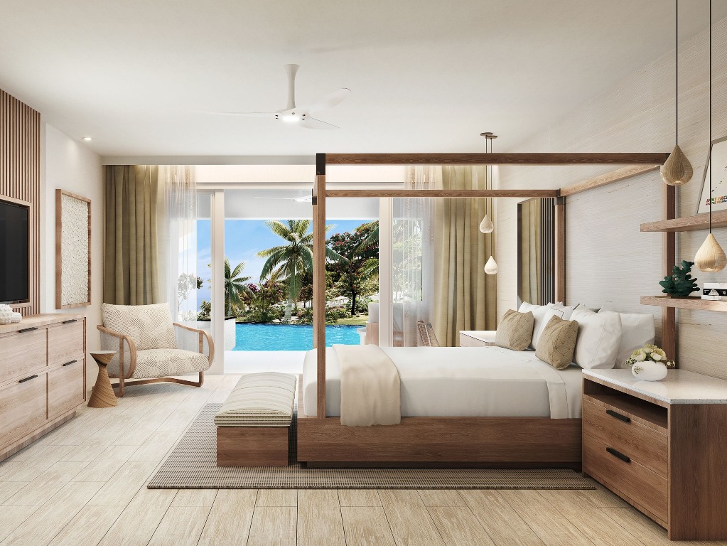 3 – Sandals’ signature Swim-up suites pay homage to Saint Vincent’s natural elements, outfitted in earthy wood tones throughout and giving way to a swim-up pool that curves gently among the foliage.