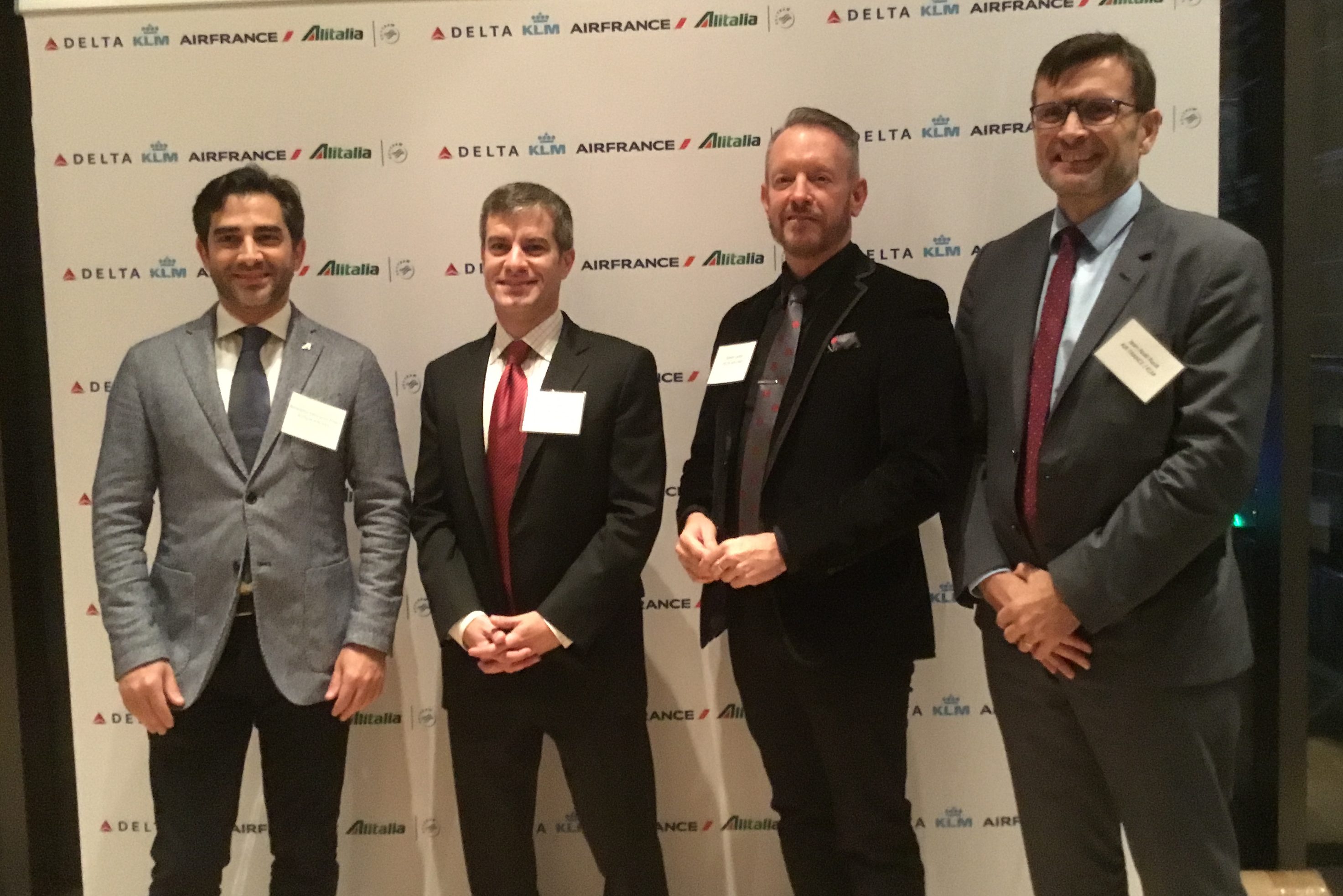 Pictured at the event are (l-r) Benedetto Mencaroni Poiani, vice president, regional manager, America’s, Alitalia, Rob LeBel, managing director, Speciality & Canada Sales, Delta Airlines, Steven Larkin, director sales, Canada, Delta Airlines, and Jean-Noel Rault, vice-president, general manager, Air France KLM, Canada.