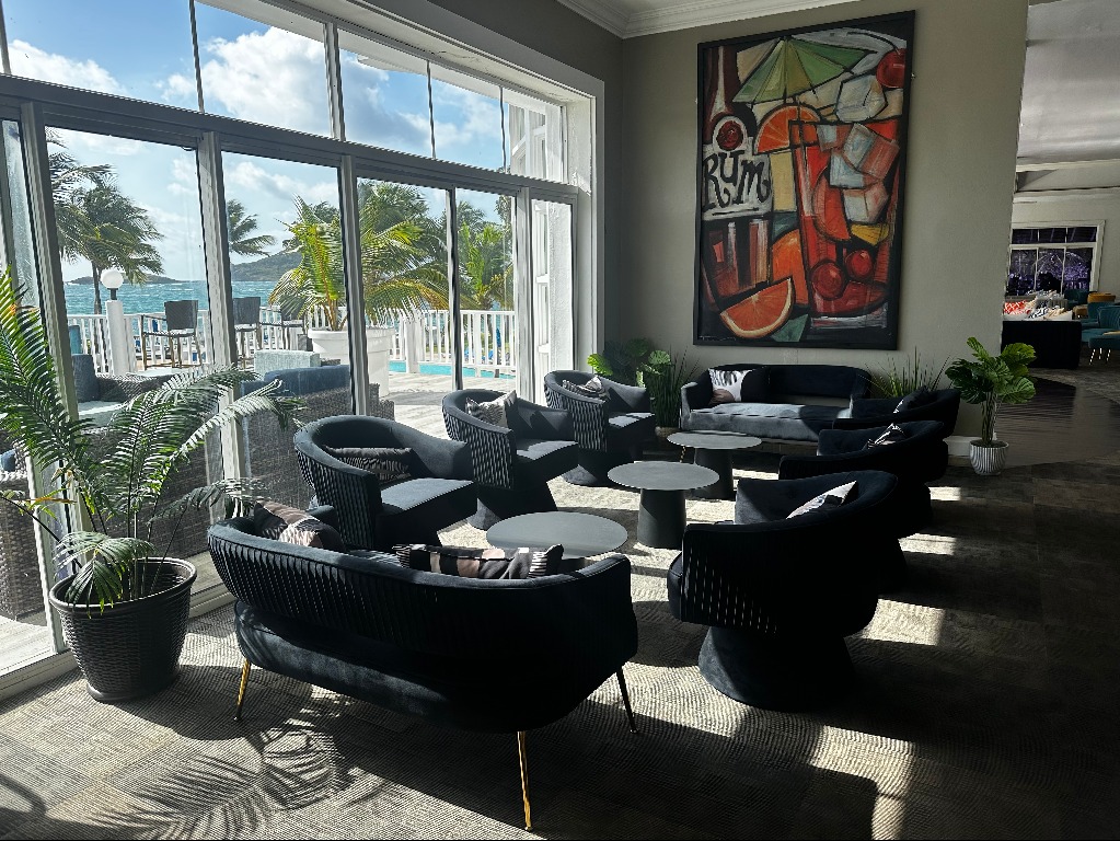 One of the newest fresh spaces is Peter John’s Lounge, a bar that’s known for its large collection of Saint Lucian Caribbean rums, which has a new look with new furniture and accessories, artwork and tables made from Chairman’s Reserve rum barrels.