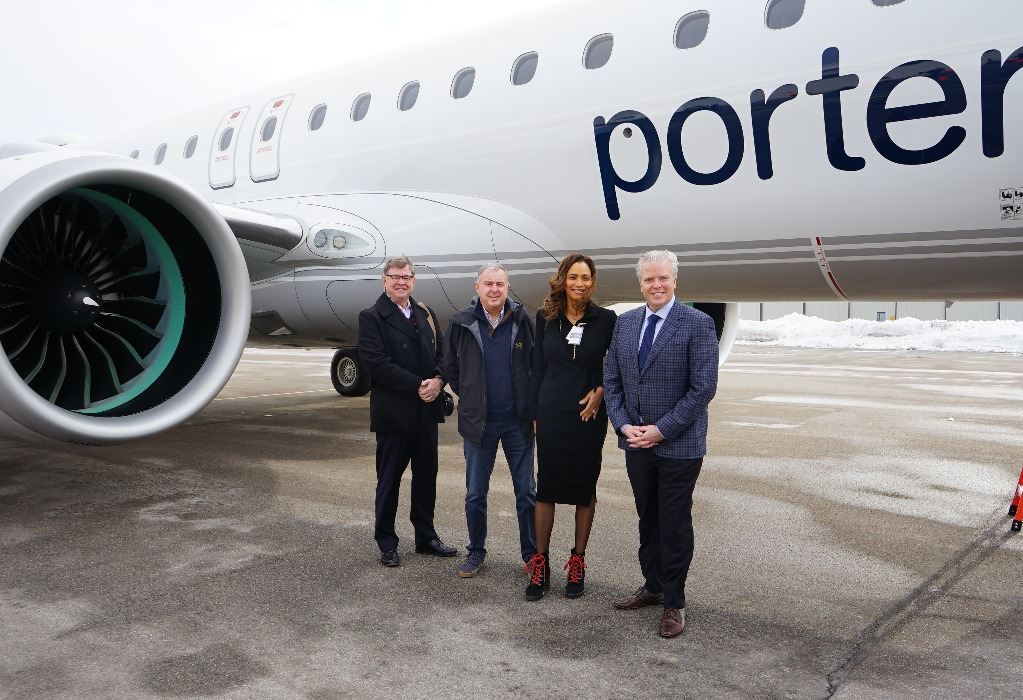 3) Johan van ’t Hof, Board of Directors, GTAA; Doug Allingham, Chairman of the Board, GTAA; Deborah Flint, President & CEO, GTAA and Michael Deluce, President & CEO, Porter Airlines, with the new Embraer E195-E2.
