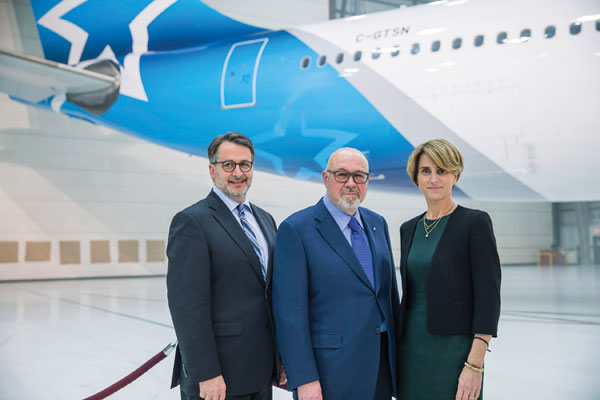 Seen from l to r, are Jean-François Lemay, president, Air Transat; Jean-Marc Eustache, president and chief executive officer, Transat; and Annick Guérard, chief operating officer, Transat. (Photo courtesy of Transat).