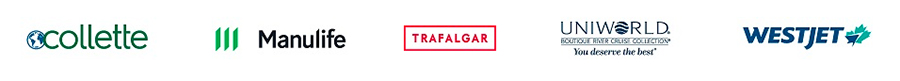 | GAdventures | Goway | Las Vegas Tourism | Manulife | Niagara Falls Tourism | Oasis Resorts | RDÉE Canada | Rocky Mountaineer | |