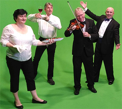 Tim Law – Emcee and World Traveller Wendy McClung – Host David McClung – First Violinist Bob Mowat – Italian Waiter Sanja Sekaric – Server Paula Padua – Flight Attendant Earl Lince – Mardi Gras Dancer Mitchell McClung – Mardi Gras Reveller and Bead Tosser Ashley Rochefort – Producer and Event Planner Dan Galbraith – Director Zac Galbraith – Sound Guy |