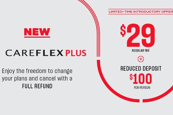When agents’ customers purchase CareFlexPlus with their vacation package, the reduced deposit of $100 per person is refundable.