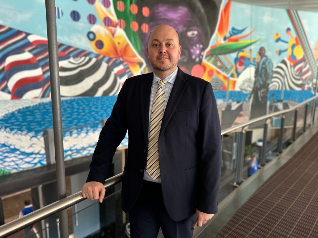 … South African Tourism’s Justin Barnette at the South Africa Awaits — Come Find Your Joy! activation showcasing the new global campaign at Indaba