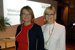 Pictured at the New Routes Celebration event last night are (l-r) Air Canada’s Lorrie Cooke and Jennifer Backus.