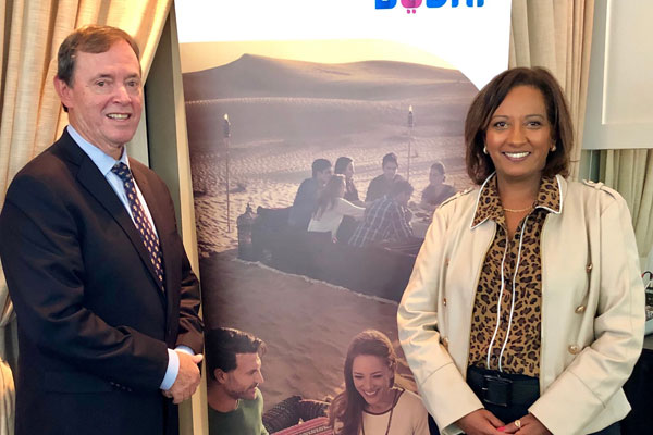 Don McWilliam, Manager – Canada, Emirates and Zena Amien-Bdar, President and Owner, Oceans Travel & Cruises attend the Emirates road show in Toronto.
