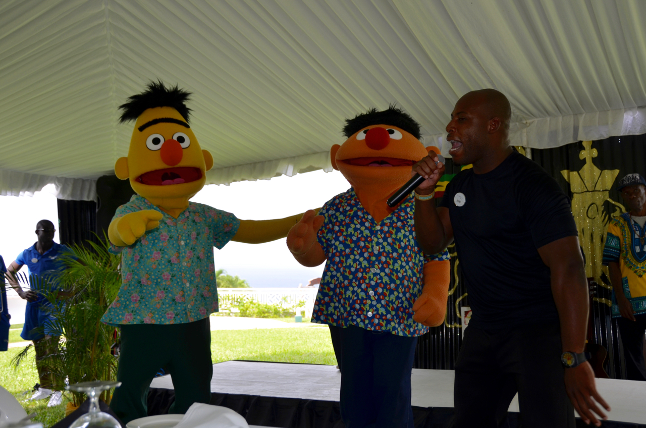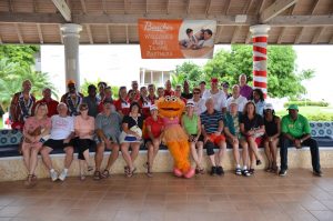 Pictured above: part of the Canadian group poses with Sesame Street’s Zoe prior to a lunch held at Beaches Ocho Rios.