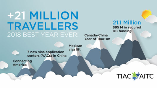 The positive growth is being attributed to Destination Canada’s increased marketing efforts in international markets, industry participation in China readiness campaigns, continued work on the increasing labour market, growth in meetings and conventions, more international air routes and TIAC’s ongoing advocacy efforts.