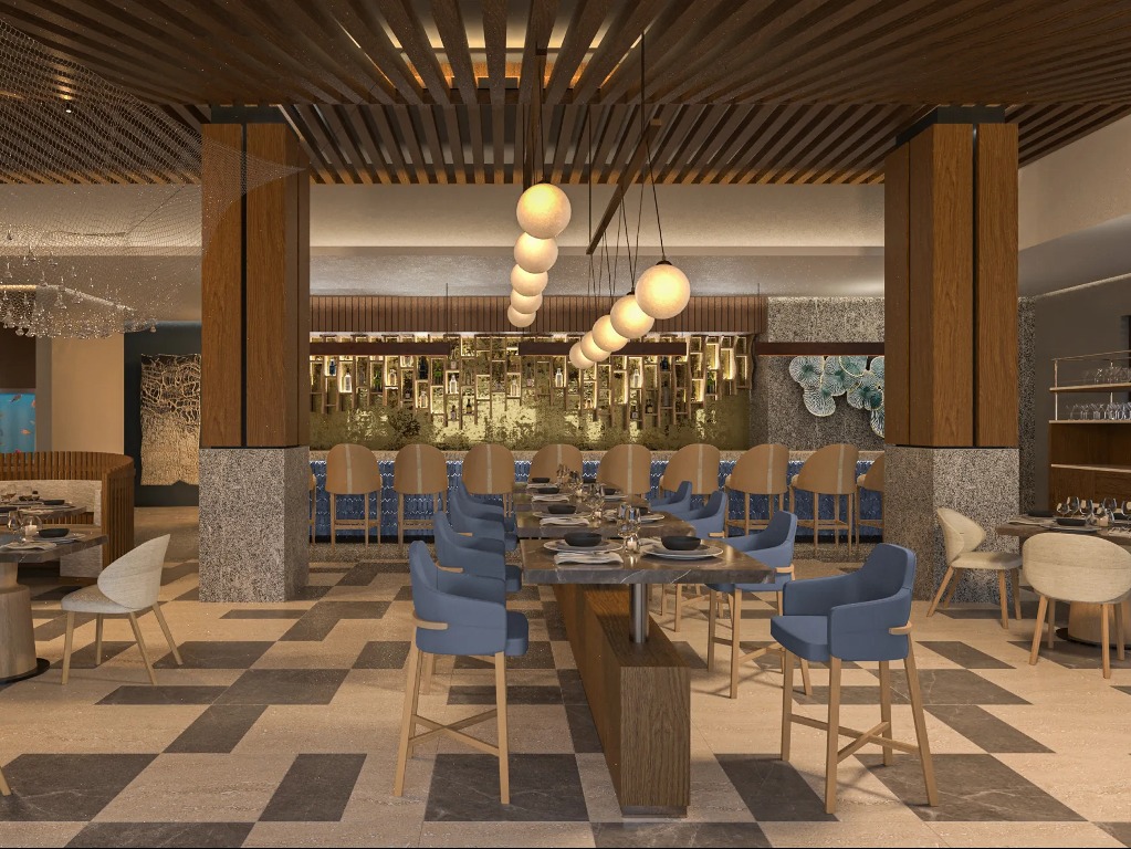Scrimshaw also has live seafood tanks, a first for the brand. A sophisticated cocktail menu carries the narrative with the Scrimshaw Martini, finished with a dash of MSG for a unique umami experience to accompany fresh seafood dishes; and the Gin Tonica, a botanical excursion in a glass adorned with citrus wheels, rosemary pimento vermouth, and lime.