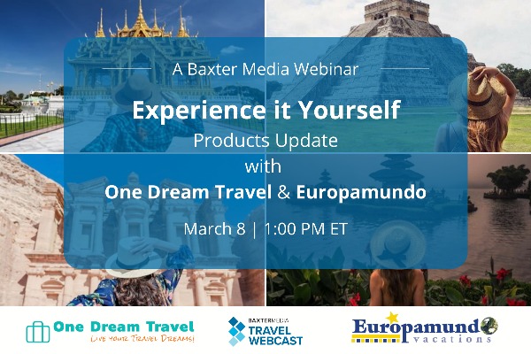 Baxter Media invites you to attend One Dream Travel and Europamundo’s webinar, “Experience it Yourself Products Update.” The webinar will take place on Wednesday, March 8, at 10:00 AM PT (1 PM ET).