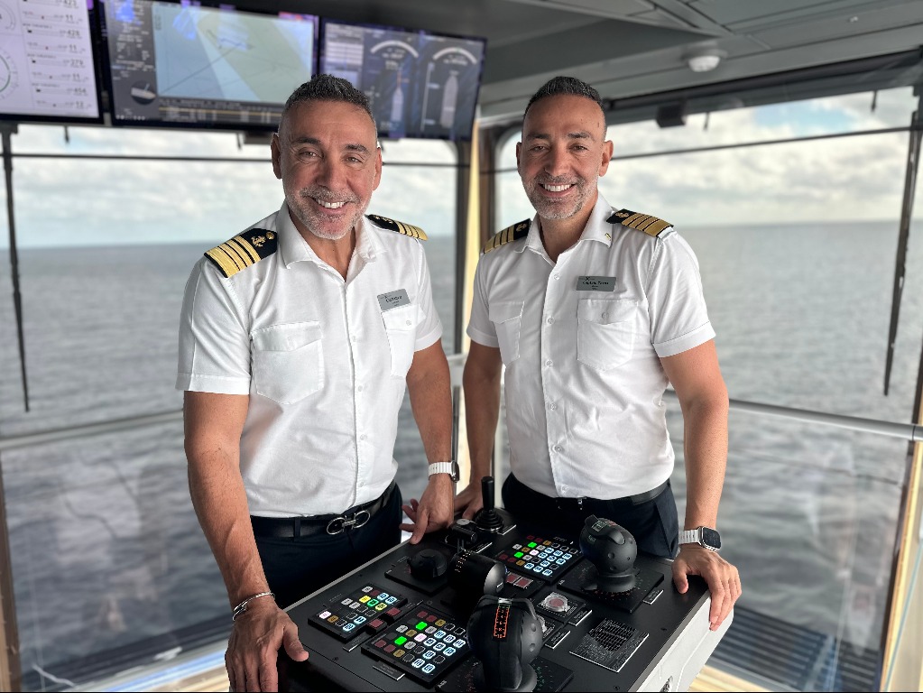 “Captain Dimitrios spent his entire maritime career spanning more than three decades with Celebrity Cruises. He started as apprentice officer in 1990 onboard Celebrity’s first vessel, the Horizon,” said Laura Hodges Bethge, who was taking part in her first naming ceremony as the president of Celebrity Cruises. “Captain Tasos grew up watching his older brother make a career at sea and he realized he wanted to follow in his footsteps. He joined Celebrity Cruises in 1998 and has been with us for more than 20 years. Together they’re our maritime dream team and we are so proud to have them in the Celebrity family. In addition to our accomplished brother captains, we have barrier-breaking godmother sisters, truly making this naming ceremony quite the family affair.”