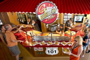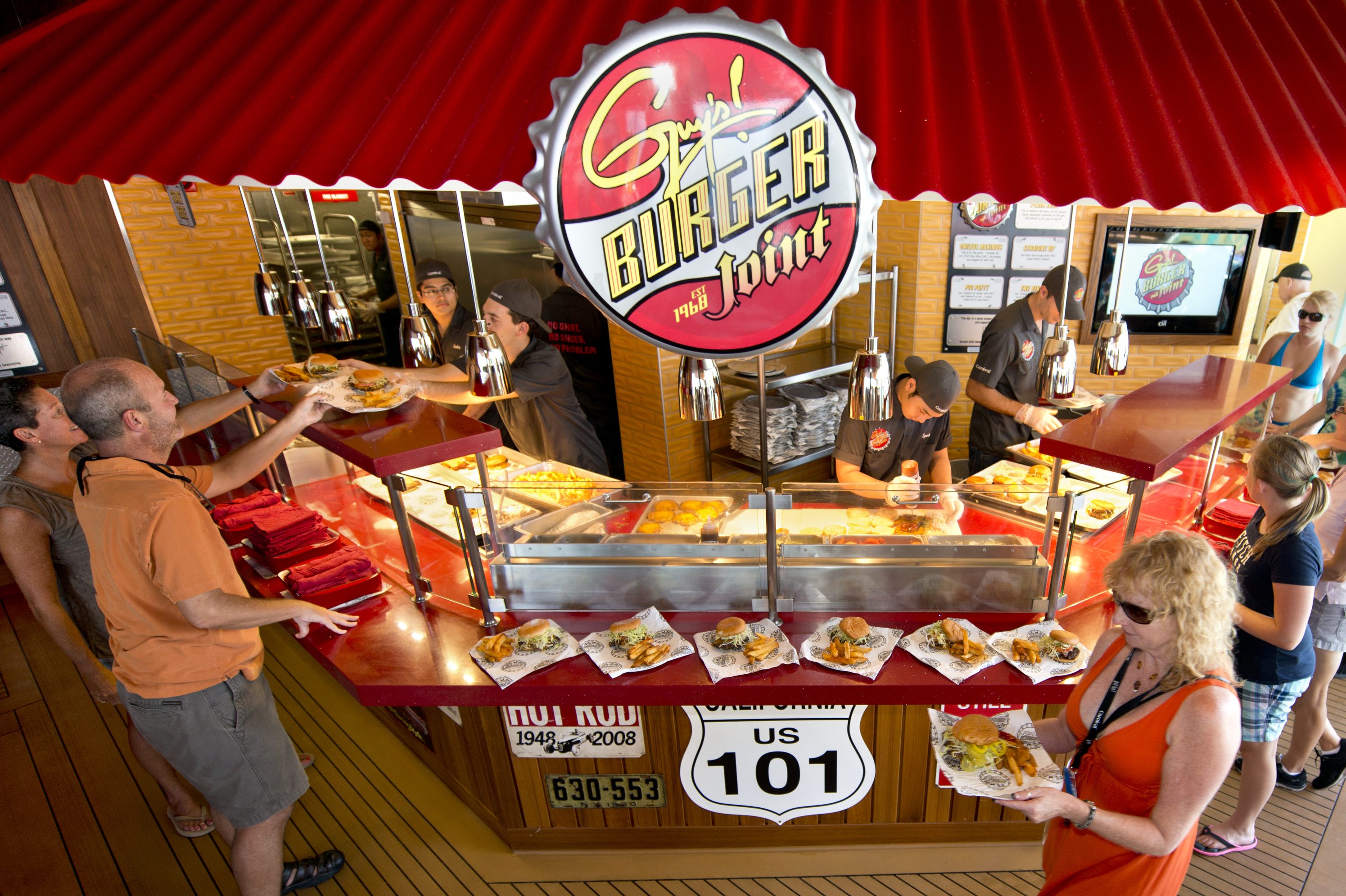 - Guy’s Burger Joint: a free-of-charge poolside venue developed in partnership with Food Network personality Guy Fieri serving hand-crafted burgers and fresh-cut fries enjoyed amidst a décor that celebrates the chef’s California roots and love of car culture.