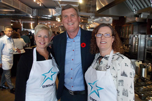 Ready to cook up something new for the 2018 Europe season, from l to r, are Transat Tours Canada Inc.’s Denise Heffron, vice-president, national sales & commercial; Dan Prior, sales manager, Ontario & Atlantic Canada; and Nicole Bursey, commercial director, who are seen at Cirillo’s Culinary Academy where the operator held its VIP Europe launch yesterday.