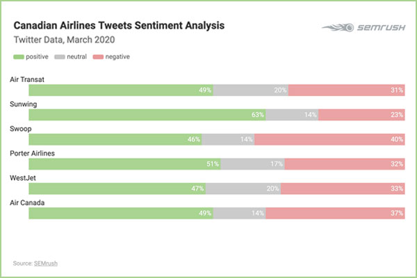 Whether due to strategic communications executed by each airline, or simply Canadian politeness, every single airline generated more positive than negative tweets about their brand.