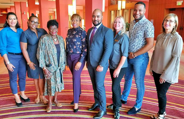 The new CSHAE Board: (from left) Tessie Duran Tonaco, marketing director of the Belize Hotel Association; Avril Alexander, executive director of the British Virgin Islands Chamber of Commerce & Hotel Association; Gilda Gumbs Samuel, executive director of the Anguilla Hotel and Tourism Association; Stacy Cox, CEO of the Turks and Caicos Hotel and Tourism Association; Brian Frontin, CEO of the Trinidad Hotels, Restaurant and Tourism Association; Lisa Hamilton, president of the U.S. Virgin Islands Hotel & Tourism Association; Miles Mercera, president and CEO of the Curaçao Hospitality & Tourism Association; and Clarisa Jiménez, president and CEO of the Puerto Rico Hotel & Tourism Association.