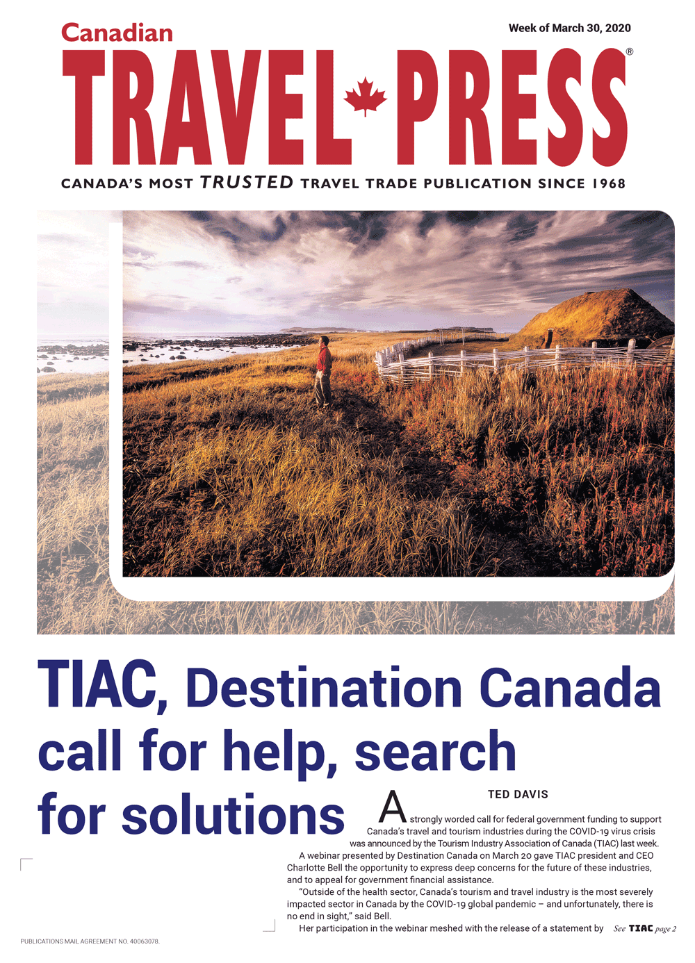 Stay home, stay safe, stay strong Issue Date: Mar 30, 2020 TIAC, Destinations Canada look for solutions WTTC says governments must act now Outbound Canada tracks COVID-19 impact Riviera Nayarit looks to the future Our world became so small, so fast ‹ Stay home, keep dreaming Get ready for takeoff… from home › Posted in Canadian Travel Press
