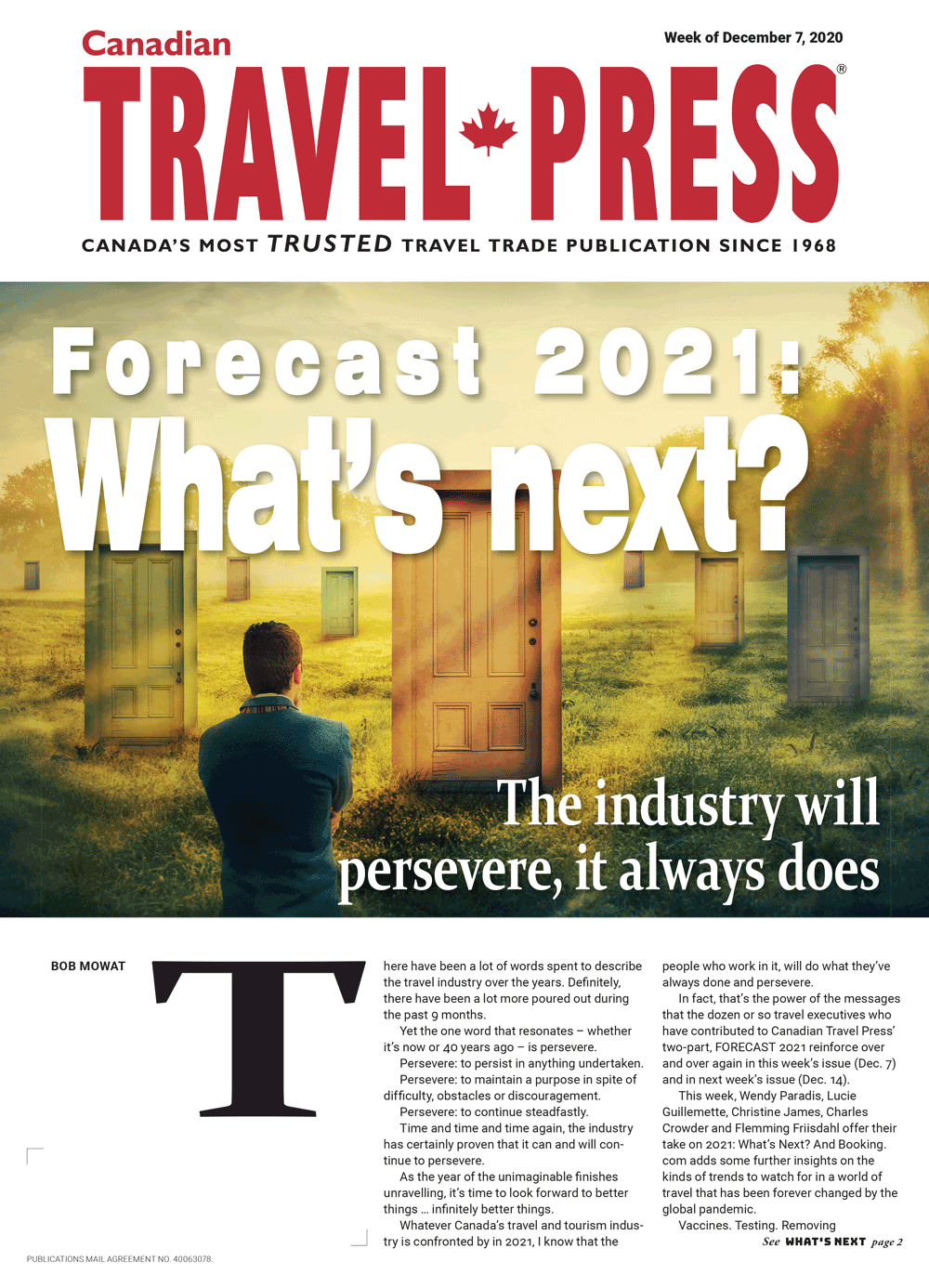 Welcome to the future … better than it used to be Issue Date: Dec 07, 2020 The industry will persevere Seeking safety, space and an agent’s advice Vaccines key to restoring confidence Be patient better times are on the way Smarter, kinder, safer: Nine predictions ‹ How to market travel responsibly during the pandemic Keep the travel dream alive › Posted in Canadian Travel Press