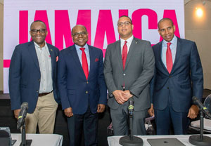 The Jamaican delegation included (l) Jamaica Tourist Board’s director of tourism Donovan White and Jamaica’s Minister of Tourism Edmund Bartlett (second from left.)