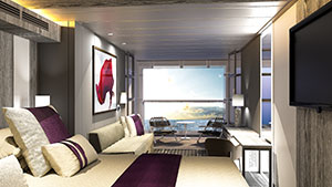 Accommodation includes the new Edge Stateroom with Infinite Veranda which turns guest quarters into a seamless space, from the room’s door all the way to the water’s edge. The simple touch of a button gives guests open-air access to the sea, bringing the outside in and the inside out. With the touch of another button, guests can take complete control of their stateroom and personalize everything from lighting, shades, temperature and service.