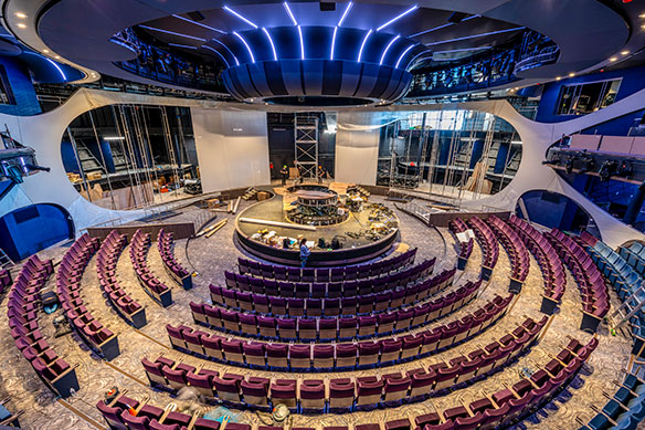The Theatre on Celebrity Edge throws away the curtain, blurring the line between audience and performance and immersing guests into a unique entertainment experience. With four stage areas and three gigantic, moving projection screens, The Theatre offers an ever-changing canvas for the productions that live here.