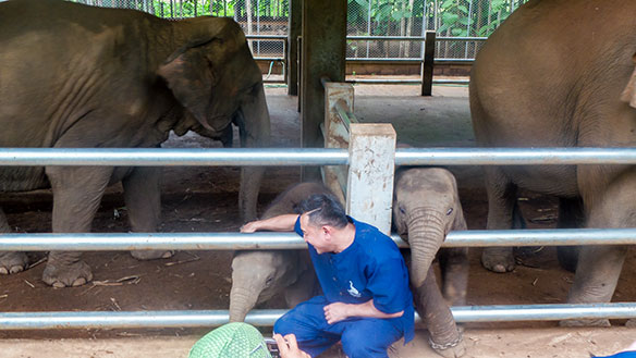 (Photo above: Chad Intrachooto of the Tourism Authority of Thailand met the two newest additions at Baanchang Elephant Park.)