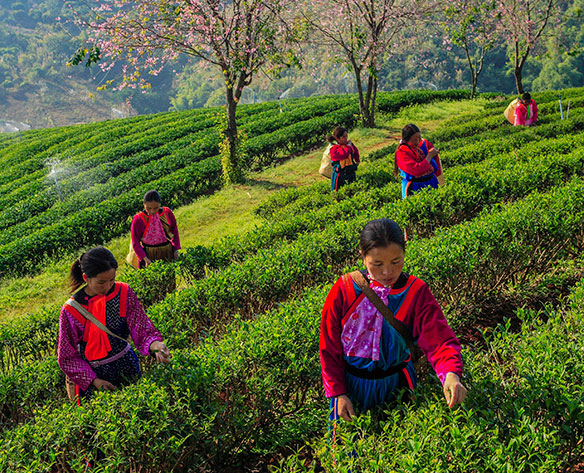 (Photo above: Workers harvesting tea at the Chok Jamroean Tea Plantation in Chiang Rai province (photo courtesy Surapol Supawattanakul for the Tourism Authority of Thailand)