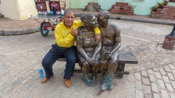 Pictured above: Infotur’s Luis Viamontes Borras sits next to one of the numerous sculptures seen in Camaguey.