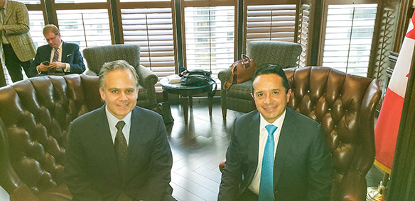 (Photo above: The tourism board’s Cesar Mendoza (l) hosted Quintana Roo governor Carlos Joaquin in Toronto recently.)