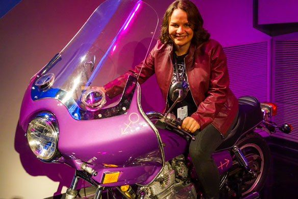 The motorcycle ridden by Prince in Purple Rain is available for photo shoots at the Museum of Pop Culture (MoPOP) in Seattle, which served as the final night venue for this year’s Ensemble International Conference. Anne Gibbons, a travel consultant for TravelOnly in Brantford, ON, tried the bike on for size.