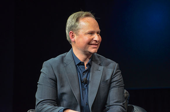 (Photo above: Mark Okerstrom, president and CEO of Expedia Group, moderates a round- table session at the recent Expedia Group Explore ’18 conference in Las Vegas.)