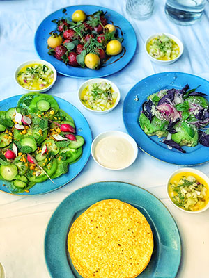 At Finca Al Mercat, his family farm in San Jose that supplies the majority of the produce he uses in the restaurant, he cuts off and digs up vegetables we later enjoy during an al fresco lunch under a canopy of bamboo trees. Whatever they can’t grow, is sourced from local farmers’ markets.