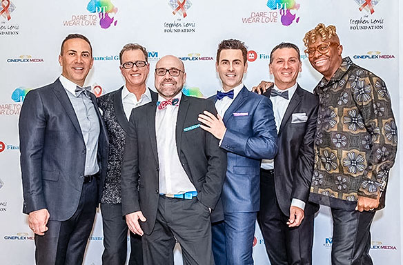 (Photo above: The Dare to Wear Love Fashion Show supports The Stephen Lewis Foundation. Shown are (l-r) Peter Salituro, Jim Searle, co-founders; Armando Mendonça; Nelson Tome; Nino Montagnese; and Chris Tyrell, co-founder.)