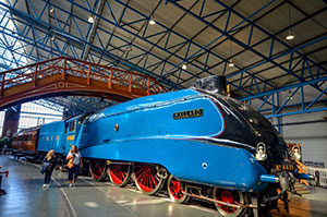 On display, for example, is the Mallard, the world’s fastest steam train (at 126 mph!) from 1938; the artistically streamlined Duchess of Hamilton, also from 1938; and a replica of Stephenson’s Rocket, one of the earliest steam locomotives from 1829 that established the supremacy of steam-powered technology at that time.