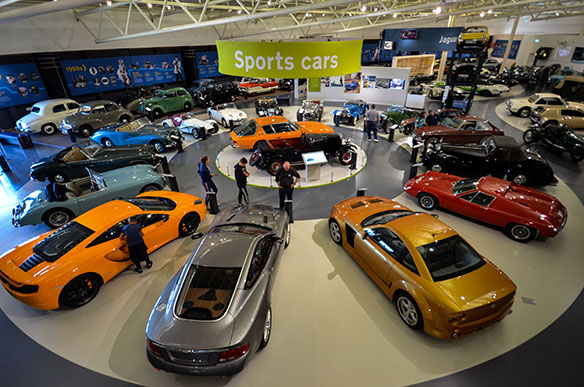 One of the top automotive collections in England is at the British Motor Museum, located in the countryside just 26 km. from the famous town of Stratford-On-Avon. It is likely the one with the best presentation in any case, as it features an impressively large main exhibit hall that groups cars of similar intention. There is, for example, a collection of track-oriented Jaguars from different eras in one spot, and another area that features lower cost production sports cars like MG, Triumph, Sunbeam, Healy and others. There is even a “Mini Mezzanine” populated with the tiny, ground-breaking micro-cars dating to the 1960s. It is £14.50 for an adult ticket to the British Motor Museum.
