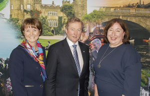 Tourism Ireland’s Alison Metcalfe (l) and Siobhan McManamy (r) with Ireland’s Prime Minister Enda Kenny in Toronto recently.