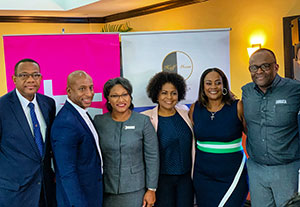 David Dobson, Chief Technical Director at the Ministry of Tourism; Omar Robinson, president of the JHTA; Shernette Crichton, general manager, Half Moon Resort; Camile Glenister, Deputy Director of Tourism, Marketing, Jamaica Tourist Board; Angella Bennett (3rd right), Regional Director – Canada, Jamaica Tourist Board; and Jamaica’s Director of Tourism Donovan White.