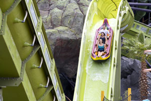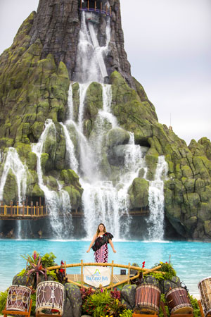 The impressive 25-acre water park replaces Universal’s former Wet ‘n Wild water park and features more than 18 attractions, from a serene winding river ride to the thrilling Ko’okiri Body Plunge, which takes riders atop the signature 200-foot volcano and features a 70-degree fall through a trap door before participants plunge 125 feet into the pool below.