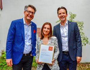 Dana Toma, senior product director at Kensington Tours (c), with the Gold Flower Award 2017 presented by Switzerland Tourism’s Alex Herrmann (l) and Pascal Prinz (r).