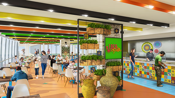 Hooked Seafood, Royal Caribbean’s first New England-style seafood restaurant, will feature fresh seafood and a robust raw bar complete with oysters shucked to order. The open-air El Loco Fresh will offer made-to-order tacos, burritos and other popular Mexican fare.