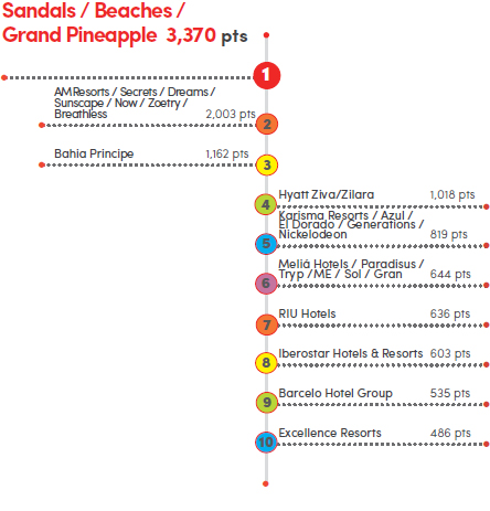 Since Agents’ Choice was launched way back in 2000, Sandals & Beaches Resorts have been the hands-down favourite of Canadian travel agents in the all-inclusive category; and in our 2017 poll, the luxury-included resort operator continues to rule this category. Along with being the national favourite, Sandals & Beaches were the favourite of agents in Ontario, Quebec and the West. Of note: Agents in Atlantic picked AMResorts as their favourite in that region… Hyatt Ziva/Zilara jumped from eighth in 2016 to fourth this year, while Meliá Hotels moved up from the ninth spot in 2016 to sixth place in 2017.