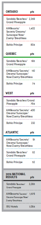 | Since Agents’ Choice was launched way back in 2000, Sandals & Beaches Resorts have been the hands-down favourite of Canadian travel agents in the all-inclusive category; and in our 2017 poll, the luxury-included resort operator continues to rule this category. Along with being the national favourite, Sandals & Beaches were the favourite of agents in Ontario, Quebec and the West. Of note: Agents in Atlantic picked AMResorts as their favourite in that region… Hyatt Ziva/Zilara jumped from eighth in 2016 to fourth this year, while Meliá Hotels moved up from the ninth spot in 2016 to sixth place in 2017. | ![]() |