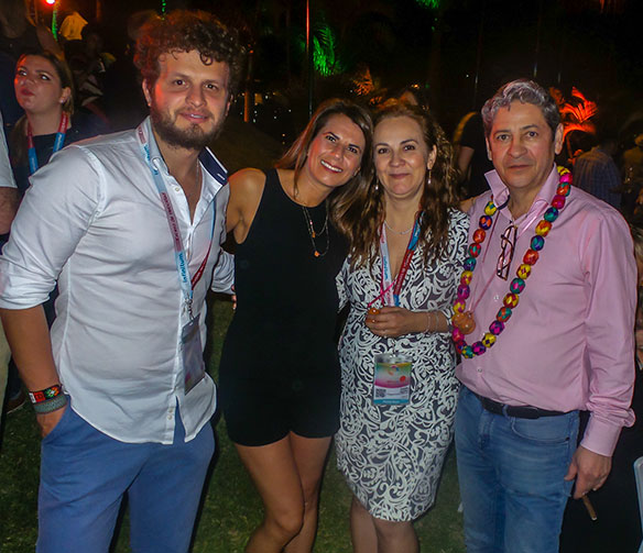 (Photo above: Among those on hand for a massive party the State of Guerrero held during Tianguis were Gabriel Cardona and Fernanda Rosas of the Mexico Tourism Board’s Montreal office; and Patricia Perez and Camilo Aguilar of Canandes.)