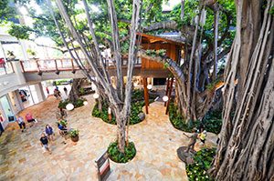But just a short stroll from the Beach Walk is one of the most obvious manifestations of the Waikiki renaissance for visitors. The International Marketplace on Kalakaua Avenue was once a rather murky, claustrophobic collection of souvenir and gift stores, anchored by a wonderful banyan tree with giant outstretched branches in the middle.
