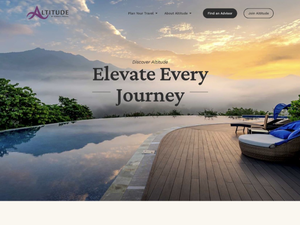 Altitude by Direct Travel is the luxury hosted advisor network within Direct Travel’s global Leisure Travel organization. With nearly 900 independent travel advisors across North America, Altitude supports experienced luxury travel entrepreneurs with dedicated operational resources, advanced technology tools, and access to longstanding supplier partnerships.